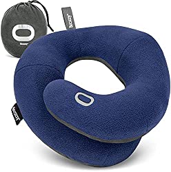 Our favorite travel pillow is the BCOZZY travel pillow. It wraps around the neck comfortably and simultaneously provides support to the neck and head. Most importantly, it will give much needed chin support as well!
